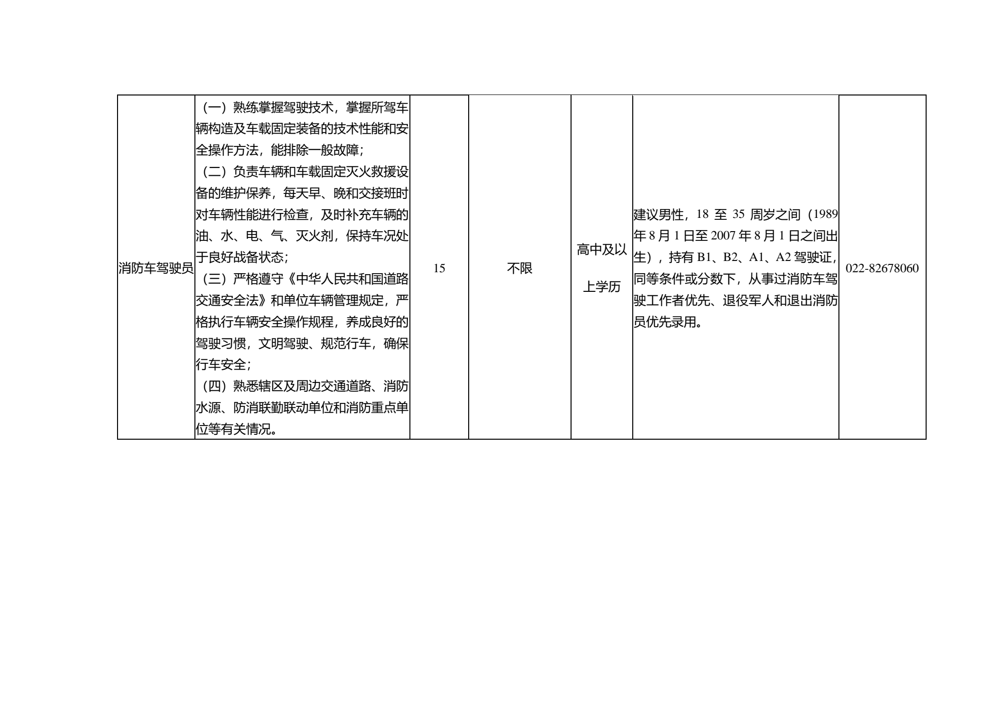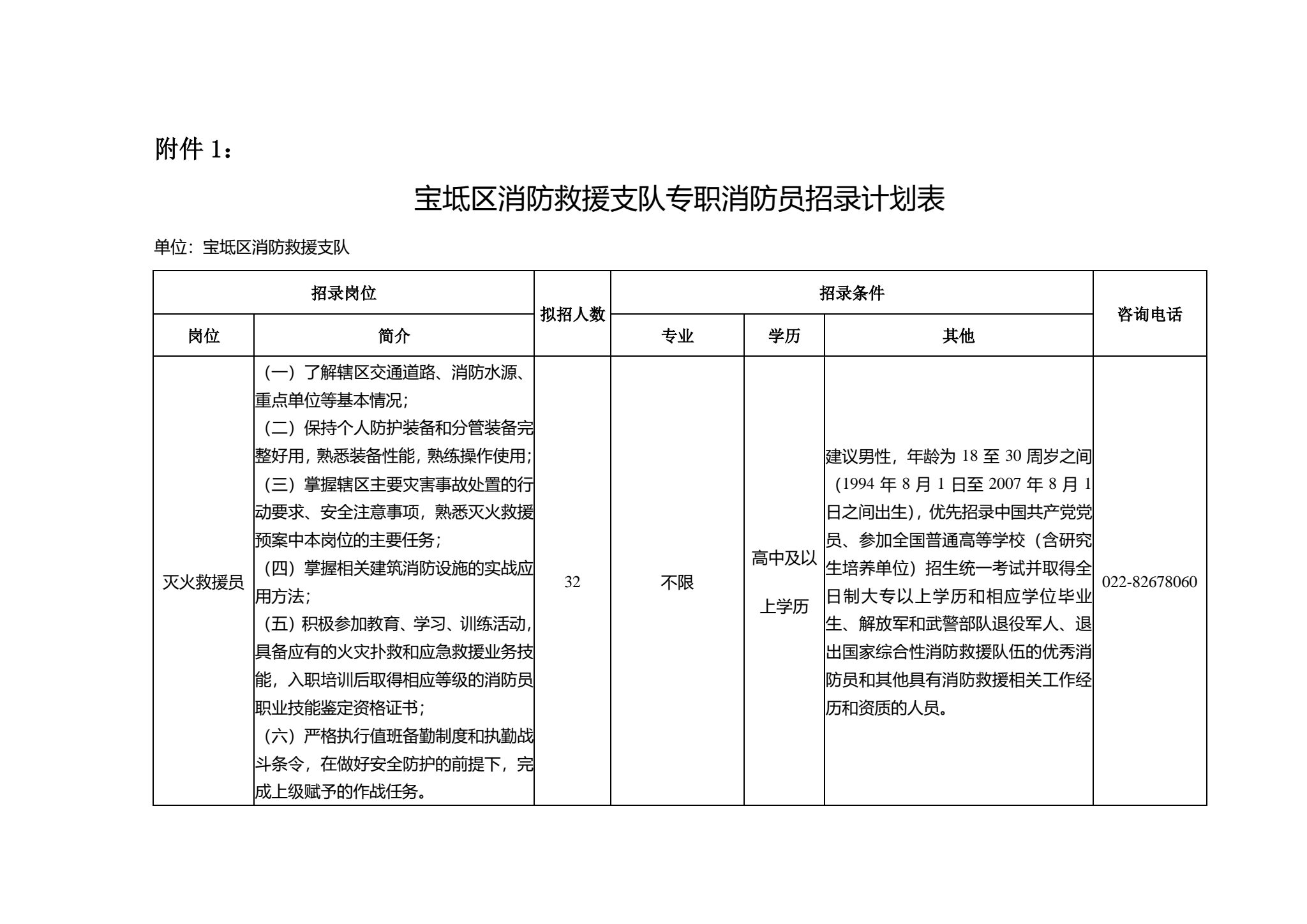 1.《宝坻区消防救援支队专职消防员招录计划表》