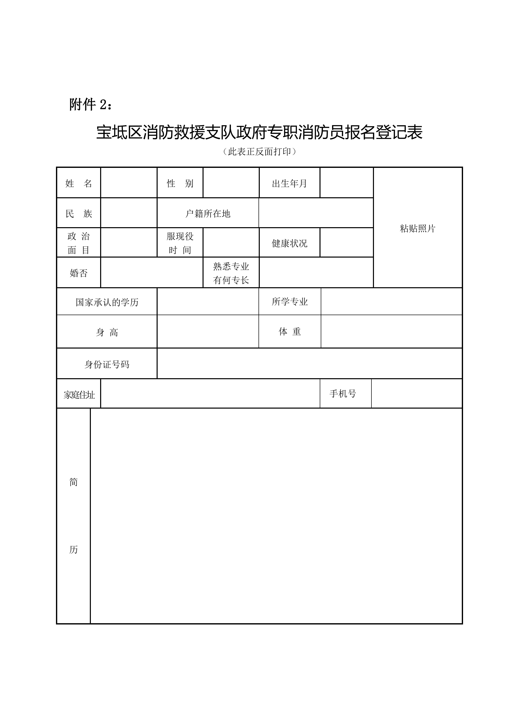 2.《宝坻区消防救援支队政府专职消防员报名登记表》