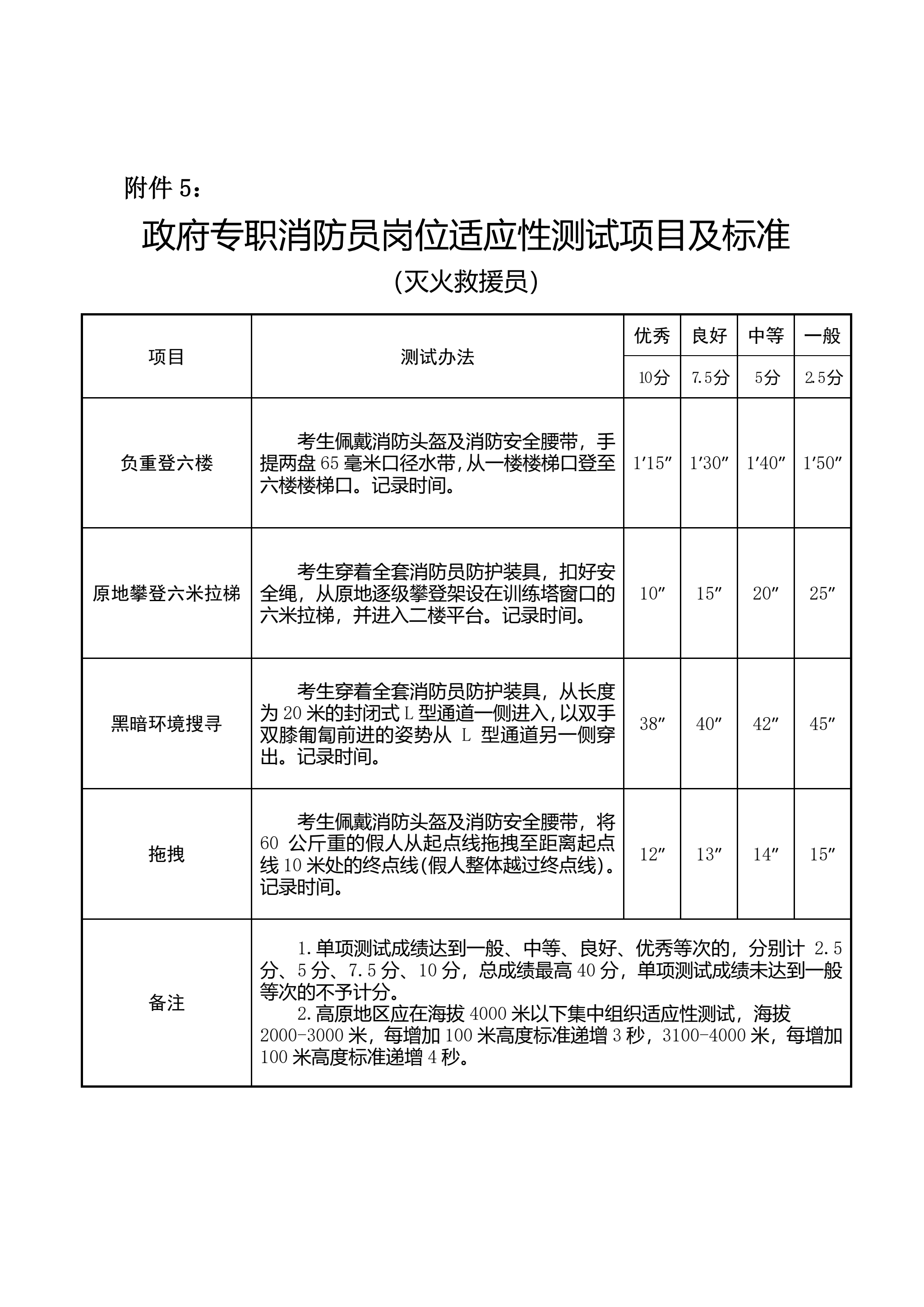 5.《政府专职消防员岗位适应性测试项目及标准》